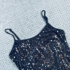 Vintage y2k babydoll coquette dark gray sparkly sequin spaghetti strap tank top weavers s