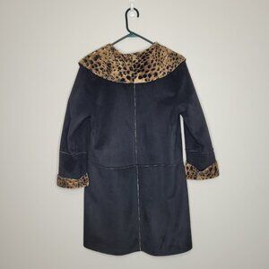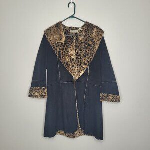 Susan Bristol jacket: black brown, animal print, faux suede, clasp front, punk,