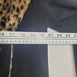 In preowned condition faux animal hairs sometimes come through to the black area on the jacket as shown