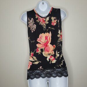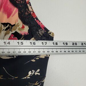 Vintage y2k black pink lace trim party moody floral going out top size large