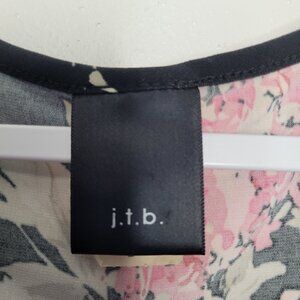 JTB top: black pink tan, floral, lace trim, vamp, romantic, whimsy
