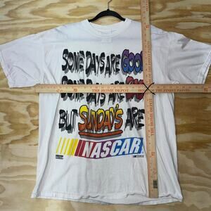 Vintage / Y2K Checkered flag sports brand white t-shirt Some days are good, some days are bad, but sundays are NASCAR. Huge front hit graphic 1990’s colorful sick logo