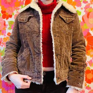 Vintage y2k cozy chocolate brown corduroy jacket with shearling faux fur trim