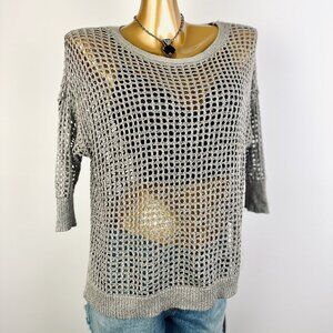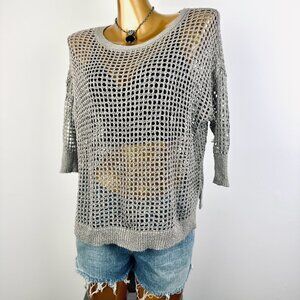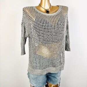This vintage y2k grunge crochet sweater top top is gray in color, and slips over the head. The condition is good, it has light wear. It would best fit a size Small/Medium. Please measure yourself before buying if you plan on wearing it.