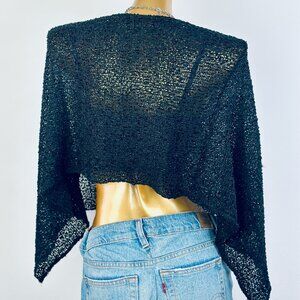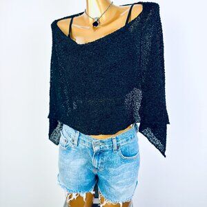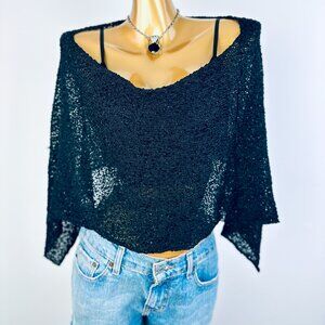 This vintage y2k grunge cropped off the shoulder cowl sweater top is black in color, and slips over the head. The condition is very good, and there is no marked size. It would best fit a size Small/Medium/Large. Please measure yourself before buying if you plan on wearing it.