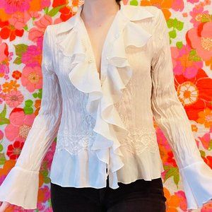 Vintage y2k ivory ruffle romantic poet blouse with frilly neckline