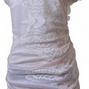 Vintage Y2K light pink short sleeve scoop neck shirt with ruching and stitching patch print