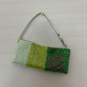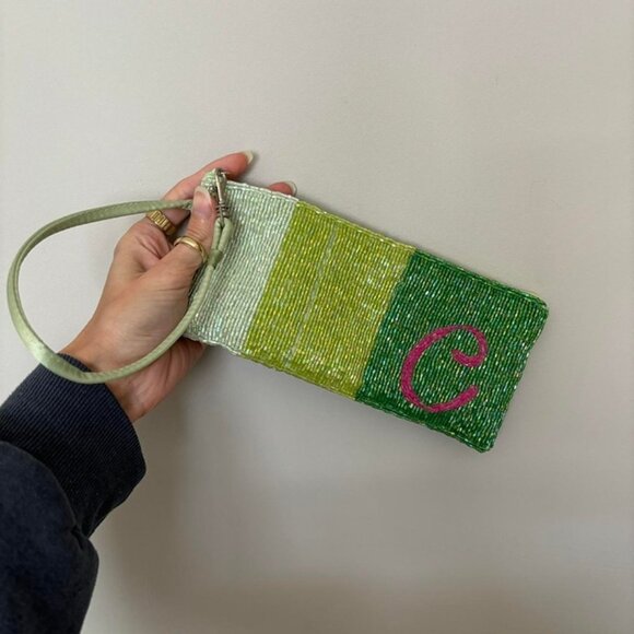 Vintage y2k liz Claiborne beaded green “C” monogram wristlet mini bag purse