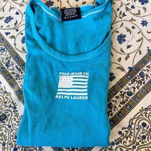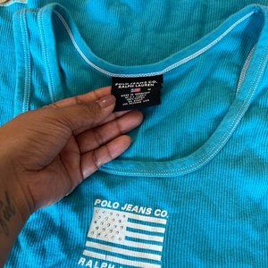 Vintage polo blue tank top rhinestones size medium but can fit a small