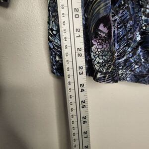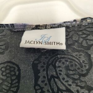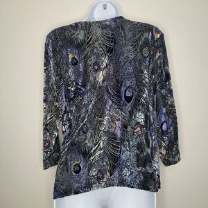 Jaclyn Smith top: black purple blue, 3/4 sleeve, v neck,
