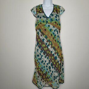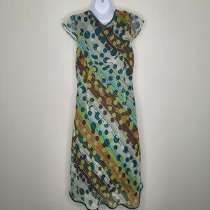 Vintage y2k teal green brown dot print grunge party short dress size 14p