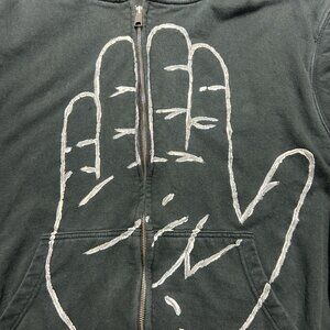 Vintage y2k waffle knit thermal lined hoodie full zip hand painted black large