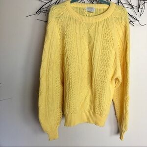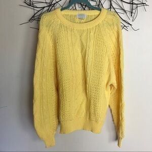 Vintage (I believe 80’s early 90’s.) cheerful cableknit extra large yellow sweater from south channel.