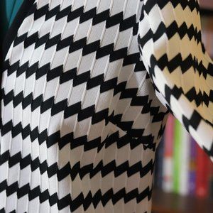 Great vintage 70s black and white zig zag sweater. Wonderfully funky and lightweight. Wear open, wear buttoned, pair with a bright dress or neutral pants- the sky is the limit for styling this piece