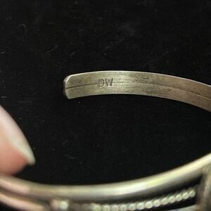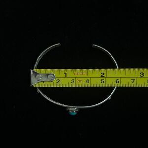 It is 6 inches all the way around, the opening for the wrist is 1 inch, and it can be adjusted very, very slightly. Since the bracelet has a stone set, you don’t wanna move it a lot. It is 0.5 inches at its thickest point and a 10th of an inch at its edge.