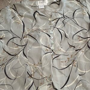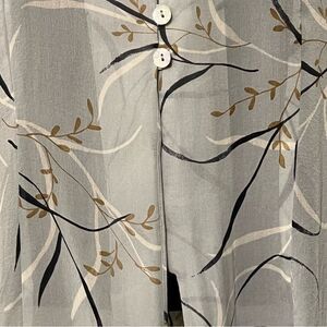 TESS 100% Silk Semi Sheer Autumn Flora Long Sleeve Button Up Split Hem Tunic