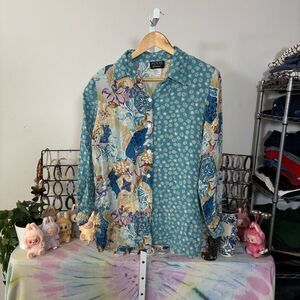 Vintage 100% silk Floral Patterned Button-Up Shirt KOOS women’s medium