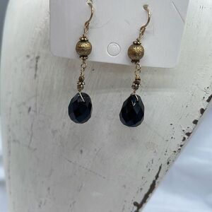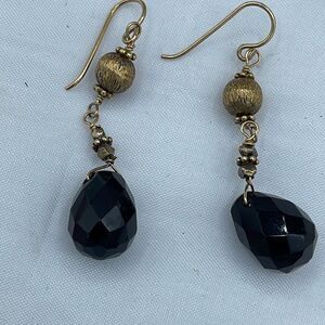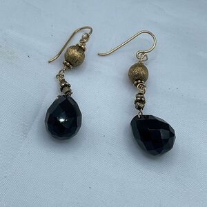 14K GF dangle drop black Tourmaline earrings .these are quite long and beautiful. The the faceted black Tourmaline.