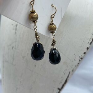 Vintage 14K GF dangle drop black Tourmaline earrings
