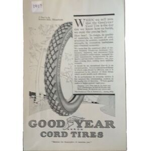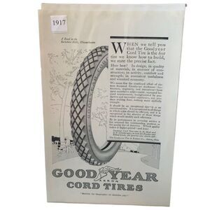 Vintage 1917 GoodYear Akron Cord Tires Ad Advertisement