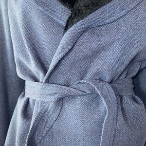 Vintage 1930’s 1940’s Blue Wool Double Breasted Belted Jacket Large Collar Size