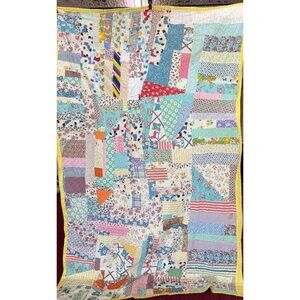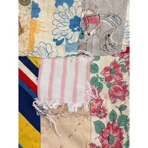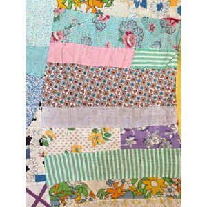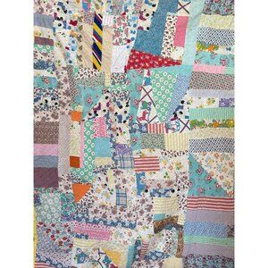 Vintage1930s Strip Scrappy Patchwork Flower Pot 2-Sided Quilt 82 x 50 Sweet