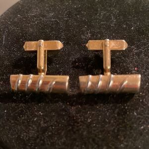 Vintage-1940s-Art Deco Swank gold plated 3D design rectangular toggle cuff links