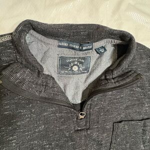 Vintage 1946 Washed, Stoned and Beaten Gray Marl with white contrasting stitching Quarter-Zip Collared Sweater Size Large. Stay warm and stylish with this gray quarter-zip sweater worn alone or over a shirt.