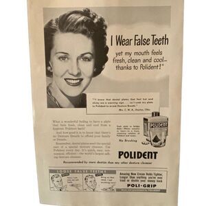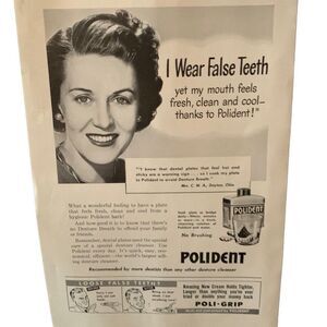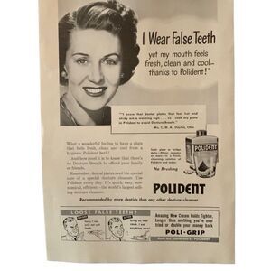 Vintage 1949 Polident Mrs. CWA False Teeth Ad Advertisement