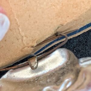Wonderful vintage cowboy hat pin in silver colored metal, this is a embossed design, it’s very fun snd iconic subject of the 50’s stamped Japan. The pin is still attached to a fragment of the original jewelry card, I’ve not removed the pin from the card . Pin measures 2”L x 1” H, good vintage condition. Please see all photos for full description.