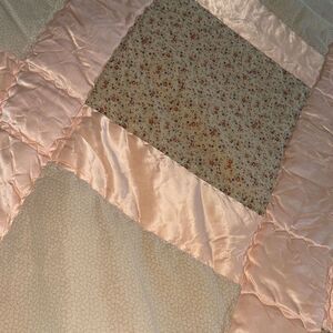 Mid-century modern vintage quilted satin comforter, nicely weighted satin AND moderate fill. This is beautiful and feminine patchwork style!