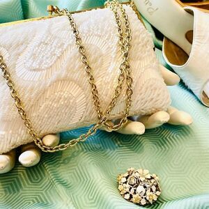 PRICE FIRM Play video with sound up! Showstopper! This gorgeous little contrasting white luster wave beaded purse by Walborg will catch attention and compliments! Thank you for looking! I washed her and removed stains, gave her a good polish and tightened loose ends.