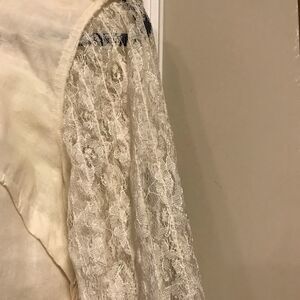 Lace sleeves have no lining, the main body has a muslin lining for an opaque look.