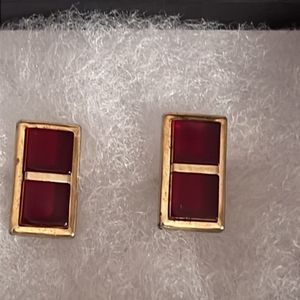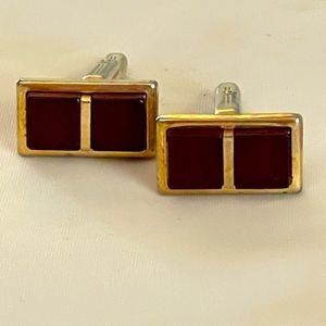 Vintage-1950s-signed Hickok double red & gold bullet back cuff links w/gift box