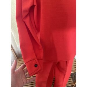 Vintage 1960’s 1970’s Red Collared Wide Leg Pant Suit Large Size 14 Stretchy