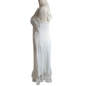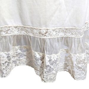 This romantic sexy slip dress has cottage and victorian vibes. The bottom has a lace panel all around. Some stretch with adjustable straps. Lace on Bust too. Has sheerness