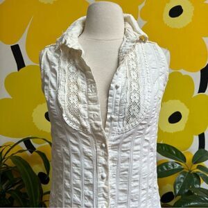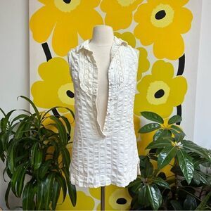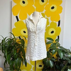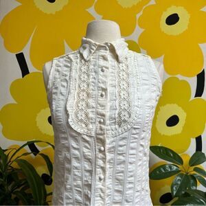Vintage 1960s Bobbie Brooks Ivory Crochet Embroidered Pleated Sleeveless Blouse