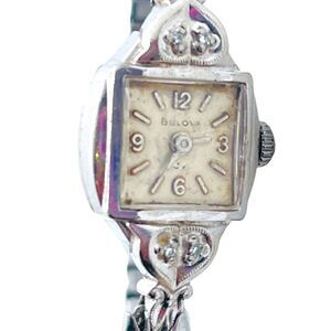 Vintage 1960s Bulova M2 4 Diamond 10k Gold Plated 17 Jewels Ladies Wrist Watch