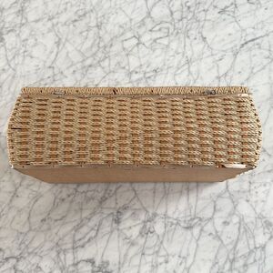 Vintage 1960s Floral Bird Embroidered Made in Japan Wicker Sewing Basket Box