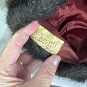 Vintage 1960’s Mod paperboy style faux fur cap. Ribbed acetate and on exterior with a satin lining. Vintage inside tag “ Jacoll Rego. Hat. Inside circumference is approximately 20”.