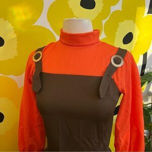 Vintage 1960s Unique Mock Neck Pinafore Twofer Pleated Balloon Gogo Dress