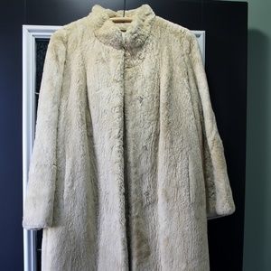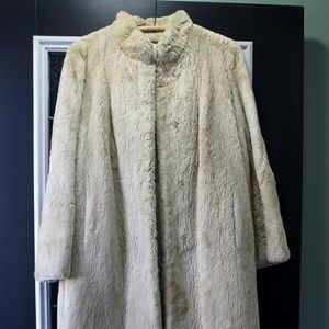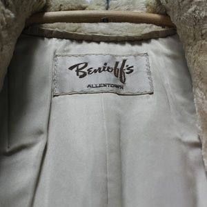 This beautiful vintage fur coat is the perfect full length coat for daily wear as well as special occasions. The fur is dyes beaver that has been sheared. The jacket is in great condition. It has one faint (what I believe to be) ink stain that has been cleaned but is still faintly visible upon inspection. The coat is made by high end furrier Benioff of Allentown, PA. The satin lining of the coat is embroidered with the previous owner's name as is customary. No odors.