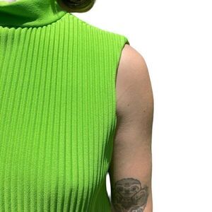 Vintage 1960s Womens Burt Stanley Lime Green Pleated Retro Mid Mod Mini Dress