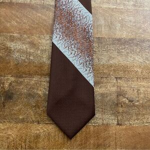 Vintage 1970’s 1980’s polyester wide neck tie brown silver