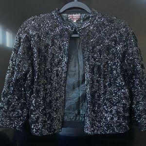 Vintage 1970's Black Sequin Evening Jacket, Size S