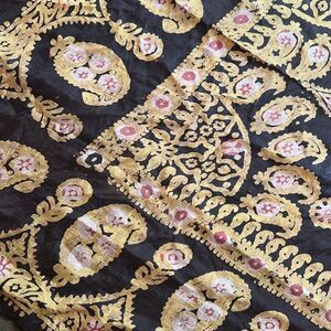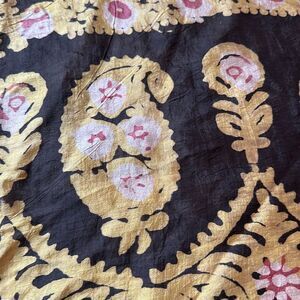 Vintage 1970s Handpainted Indian Blockprint Shawl Scarf 84x50