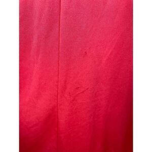 Beautiful Vintage 1970s bell sleeve dress with mock neck. Bright coral pink/red color. Unique waist seaming. Fabric is lightweight and stretchy, feels synthetic. Back zipper.