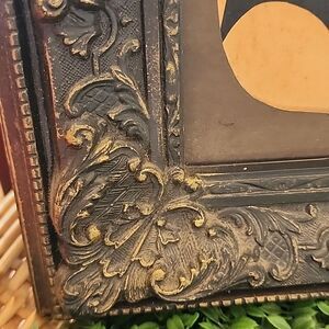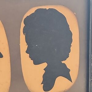 Vintage groovy 1970's couple framed silhouettes, in intricate brushed brass tone plastic (possibly polystyrene) frame.