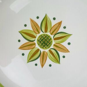 Vintage 1970s Stoneware 12" Chop Plate Serving Platter Handpainted Avocado Japan Fine Earthenware Gift Collectible Dinner Table Kitchen Green 70s Mid Century Modern MCM Heavy Quality Centaur Pattern Colorful Green Replacement Flower Floral Hippie Boho