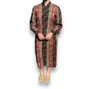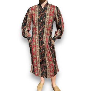 Vintage 1970s Womens Lang Originals Retro Boho Floral Geometric Maxi Dress Sz M